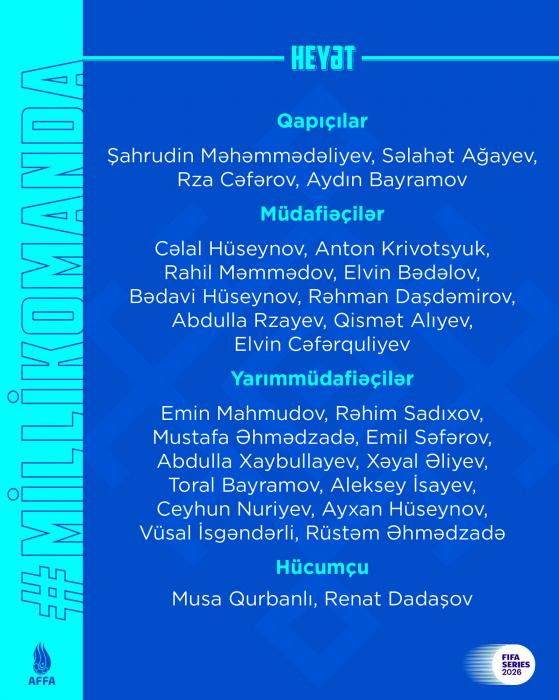 Azərbaycan milli komandasının “FİFA Series – 2026” turniri üçün heyəti açıqlanıb.