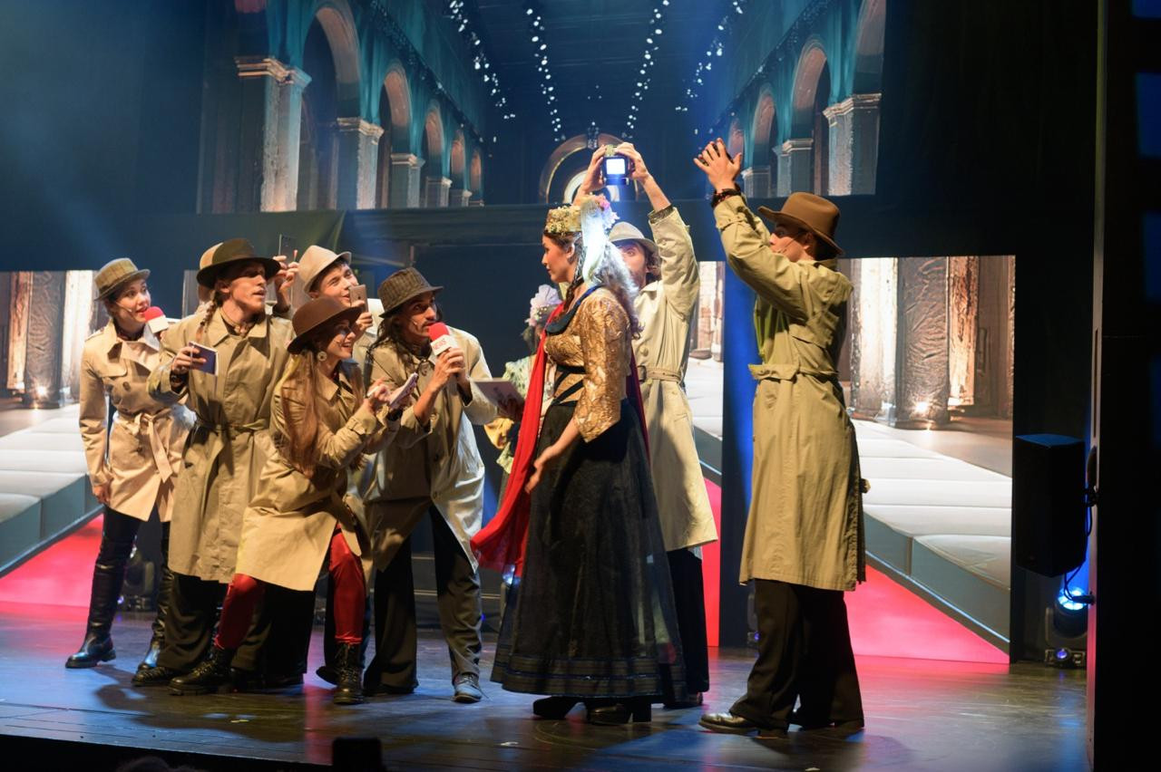 Daha sonra tamaşa nümayiş olunub. Alman dilində təqdim edilən tamaşa tanınmış rejissor Rita Serayniq və dirijor, bəstəkar Maykl Şnakın bədii rəhbərliyi altında tamamilə yerli yaradıcı heyətin iştirakı ilə hazırlanıb. Səhnə rəssamı və vizual elementlərin dizayneri Kristian Ariel Heredia, geyim rəssamı Vüsal Rəhim, xoreqrafı Suzanne Rietsdir.