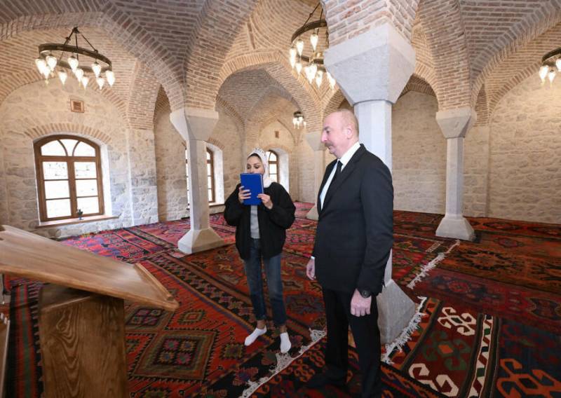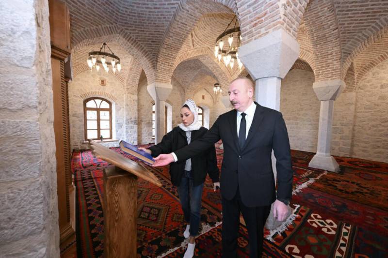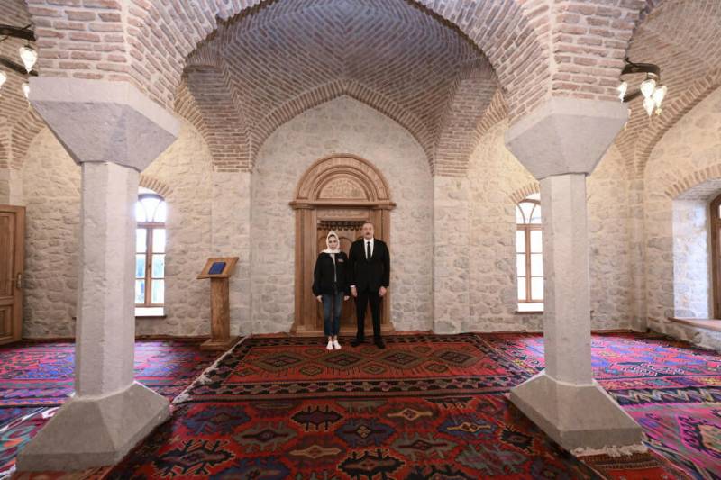 Azərbaycan Respublikasının Prezidenti İlham Əliyev və birinci xanım Mehriban Əliyeva Şuşada Mamayı məscidinin bərpadan sonra açılışında iştirak ediblər.