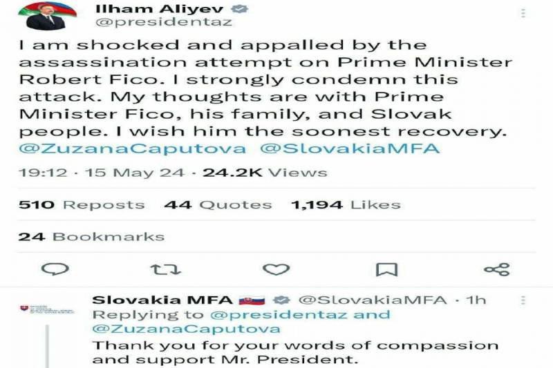 Qeyd edək ki, Prezident İlham Əliyev Slovakiyanın Baş naziri Robert Fitsoya sui-qəsdlə bağlı “X” səhifəsindəki paylaşım edib.