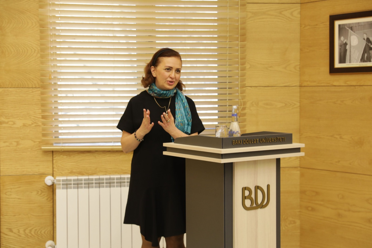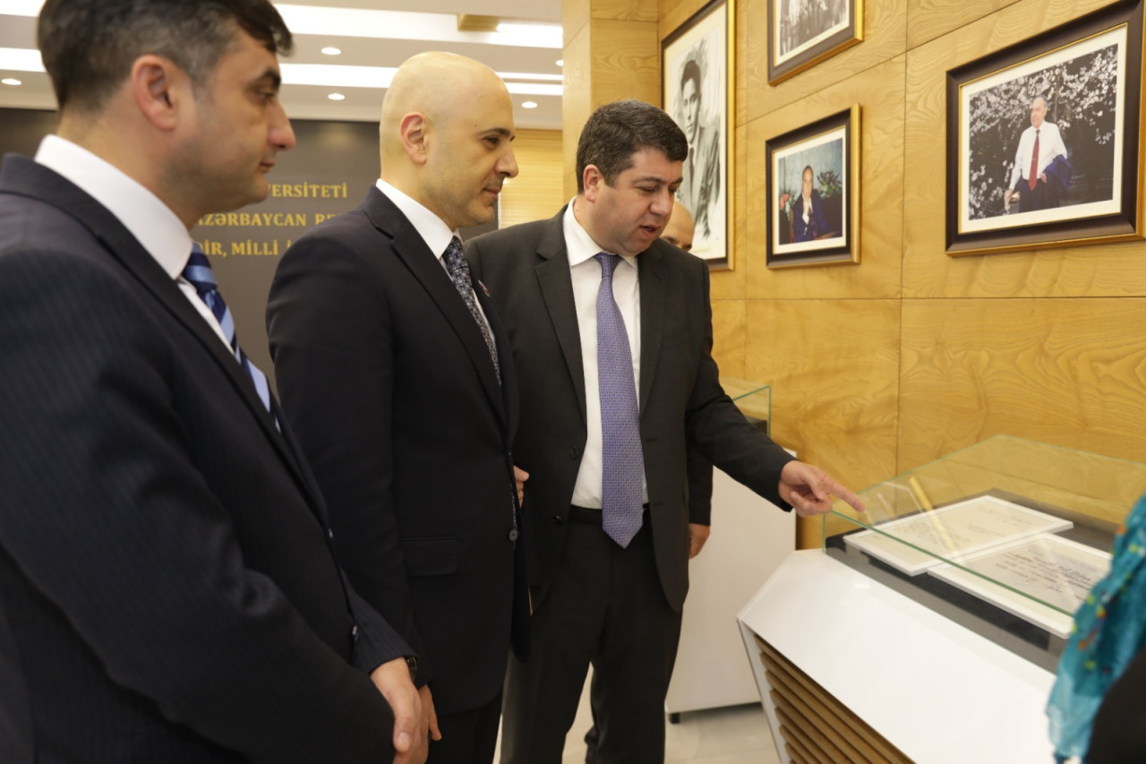 Hüseynov və BDU-nun Heydər Əliyev Muzeyinin mütəxəssisi Afət Seyidbəyova