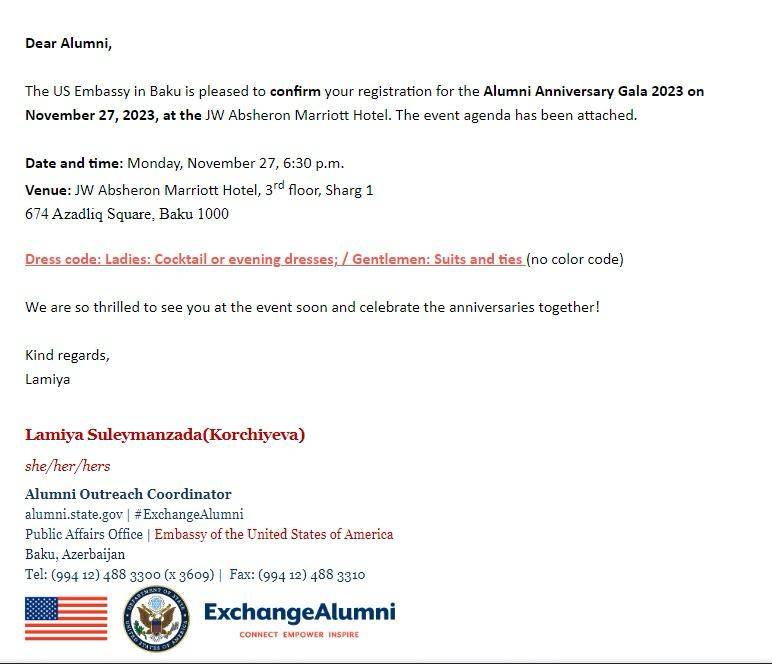 Məsələ burasındadır ki, “Məzunların yubiley qalası” adı verilən “tədbir” əslində, sabah 18:30-da “JW Marriott Absheron” hoteldə keçirilməli idi. Bununla bağlı ötən gün “Qafqazinfo”da məlumat yayılmış, Azərbaycanın hüquq-mühafizə orqanlarının məsələdən xəbərdar olduğu, iştirakçıların gələcəkdə ifşa olunması üçün tədbirin nəzarətə götürüldüyü oxucuların diqqətinə çatdırılmışdı.