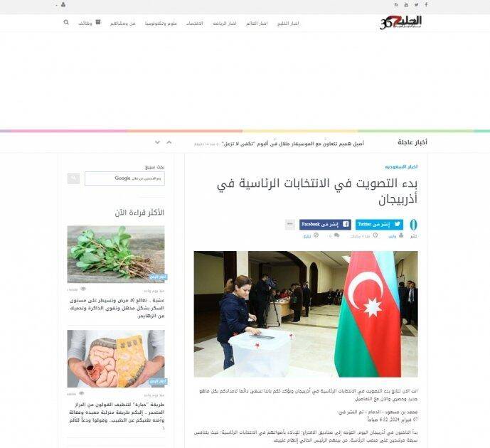 Azərbaycan Respublikası Prezidentinin növbədənkənar seçkiləri ilə bağlı bu gün keçirilən səsvermə prosesi ərəb mediasının diqqət mərkəzindədir.
