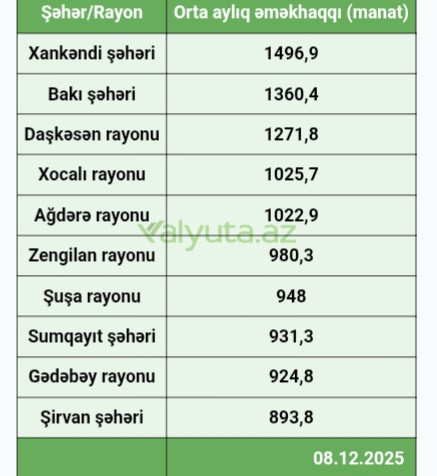 Hesabat dövründə ölkə üzrə orta aylıq nominal əməkhaqqı 1 087,7 manat təşkil edib. Bu göstərici ötən ilin eyni dövrünə nisbətən 94,7 manat və ya 9,5% artıb.