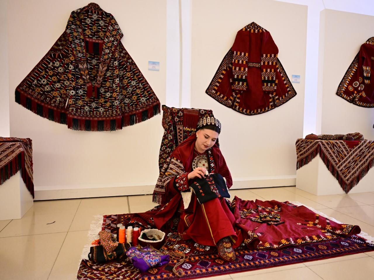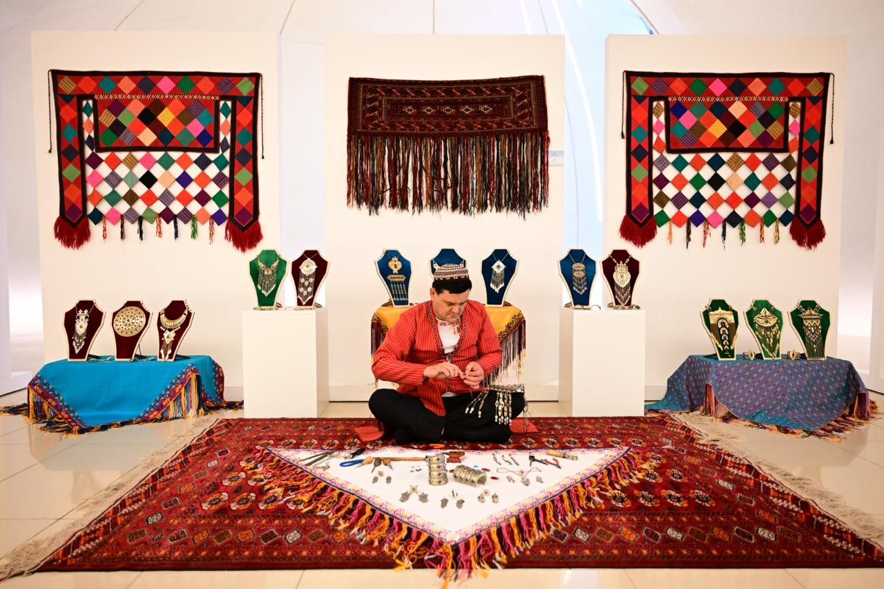 Sonra sərgi ilə tanışlıq olub. Məlumat verilib ki, sərgidə türkmən xalqının kişi və qadın milli geyimləri, xalça, palaz kimi toxuculuq və dekorativ-tətbiqi sənət nümunələri təqdim olunur. Ekspozisiyada həmçinin qardaş xalqın tarixi şəxsiyyətlərinin, eləcə də qədim mədəniyyət abidələri və müasir inkişafını əks etdirən fotolar nümayiş etdirilir.