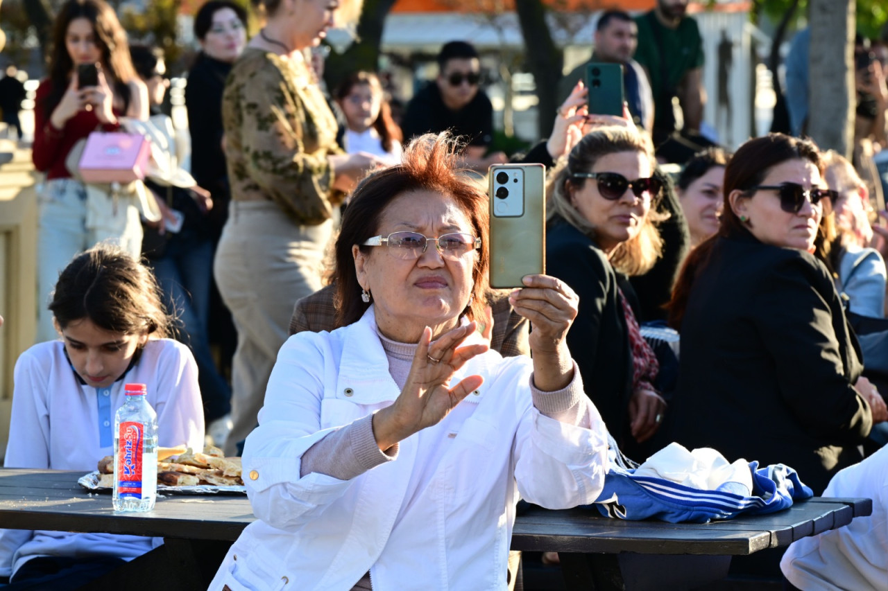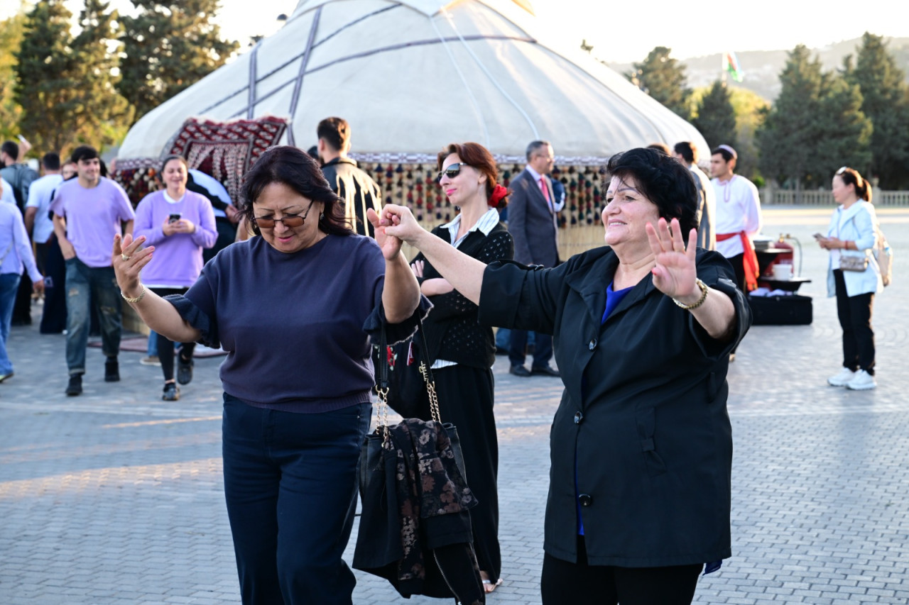 Parkda qurulan və içərisi xalçalarla bəzədilmiş qədim türkmən çadırı tamaşaçıların xüsusi marağına səbəb olub.  Qonaqlar çadırın ətrafında qoyulmuş masalarda Türkmənistan mətbəxinin ləziz təamlarını dadıblar.