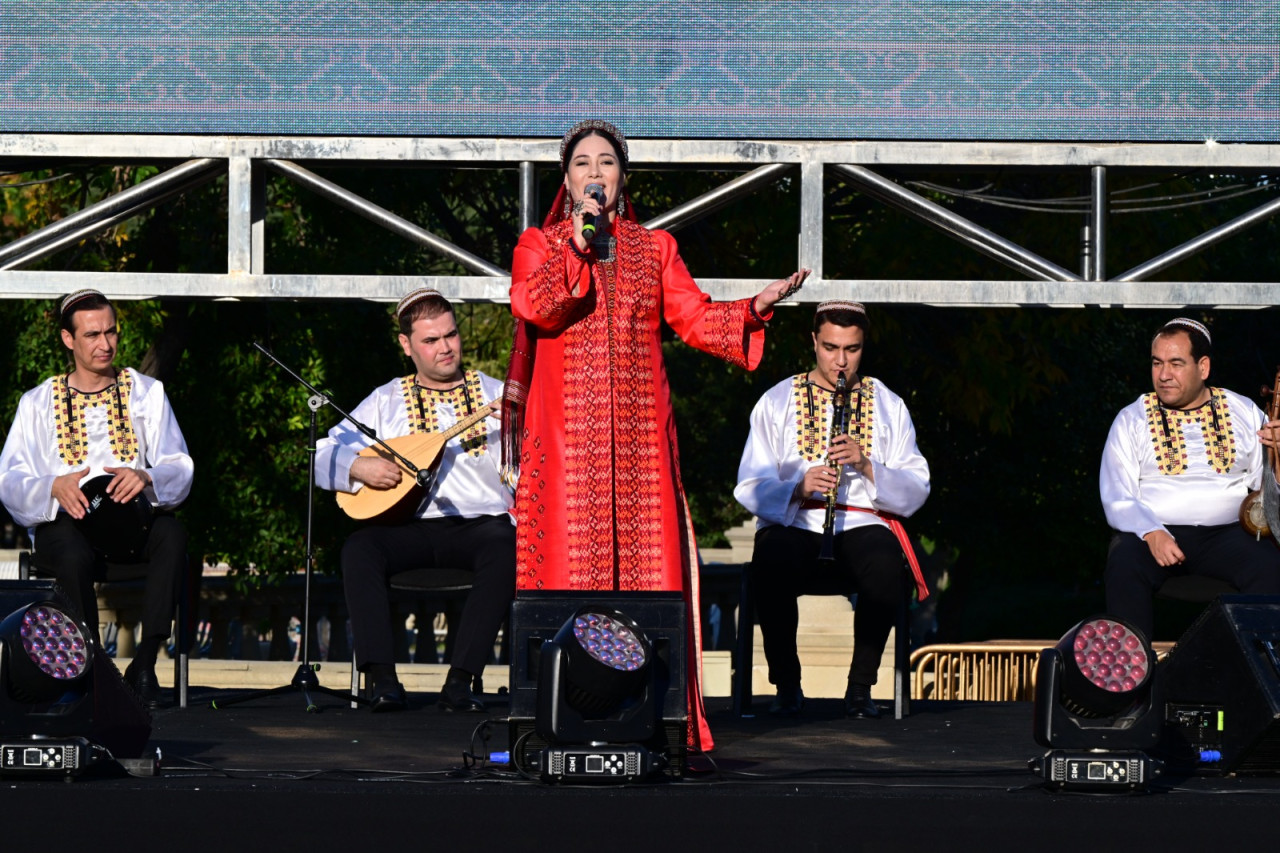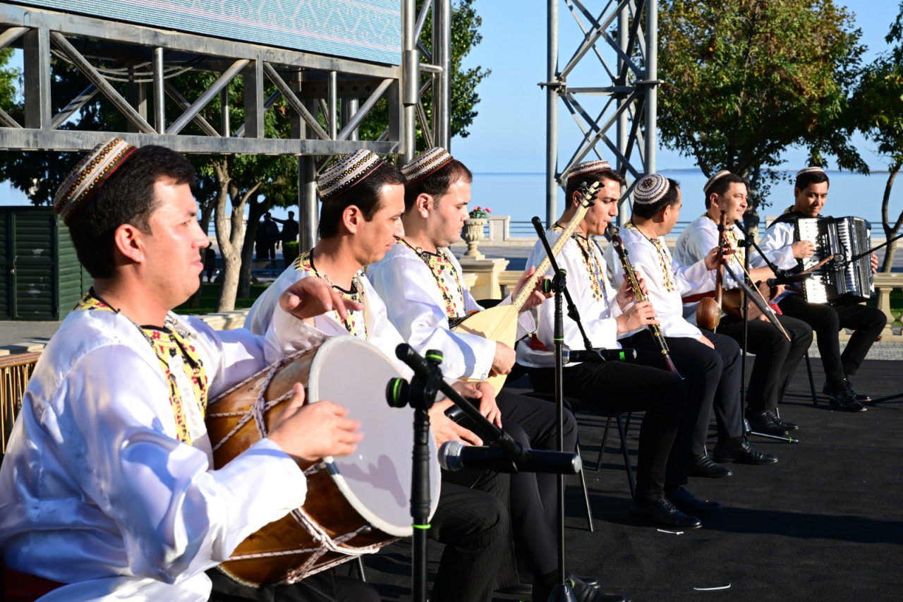 Ərazidə quraşdırılan böyük səhnədə Türkmənistan incəsənət ustalarının ifasında təqdim olunan musiqi nömrələri tamaşaçılar tərəfindən alqışlarla qarşılanıb.