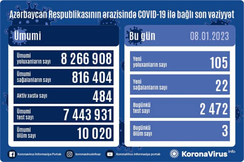 Azərbaycanda koronavirus (COVID-19) infeksiyasına 105 yeni yoluxma faktı qeydə alınıb, 22 nəfər müalicə olunaraq sağalıb.