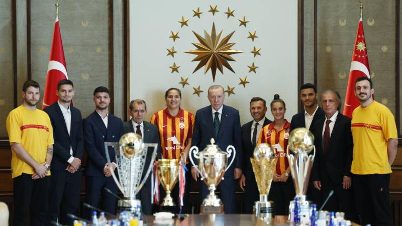Türkiyə prezidenti Rəcəb Tayyib Ərdoğan Prezident Kompleksində Superliqa çempionluğunu qazanan "Qalatasaray"da prezidenti Dursun Özbek, idarəçilər, texniki heyət və idmançılarını qəbul edib.