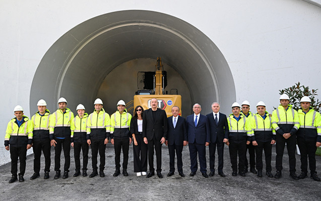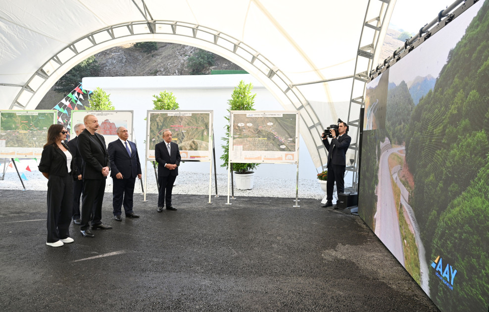 Manset.az xəbər verir ki, dövlət başçısı bu yolun 13,5-ci kilometrliyində inşa edilmiş və uzunluğu 11,7 kilometr olan Murovdağ tunelinin texniki açılışını edib.