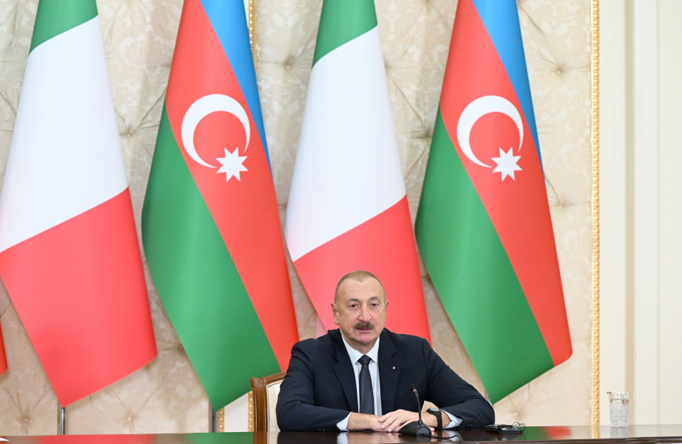 Bizim aramızda iki strateji tərəfdaşlıq sənədi var. Birinci sənəd 2015-ci ildə imzalanmışdır. İkinci sənəd - Hərtərəfli Strateji Tərəfdaşlıq haqqında Birgə Bəyannamə isə 5 il bundan əvvəl imzalanmışdır. Bu illər ərzində münasibətlərimiz çox sürətlə və müxtəlif istiqamətlər üzrə inkişaf edib. Siyasi əlaqələr ən yüksək səviyyədədir. Qeyd etdiyim kimi, biz tez-tez görüşürük. İqtisadi sahədə İtaliya bizim üçün birinci ticarət tərəfdaşıdır və ildən-ilə ticarət dövriyyəmiz artmaqdadır. Energetika sahəsində bir çox önəmli layihələr icra edilmişdir. Xüsusilə Azərbaycan neftini və qazını İtaliyaya ixrac etməklə biz dünya bazarlarına geniş həcmdə öz təbii resurslarımızı göndərə bilmişik. Eyni zamanda, bir çox ölkələrin enerji təhlükəsizliyinə də öz töhfəmizi vermişik.
