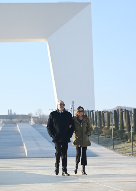 Azərbaycan Prezidenti İlham Əliyev və birinci xanım Mehriban Əliyeva bu gün Xankəndi şəhərində Zəfər parkının açılışında iştirak ediblər.
