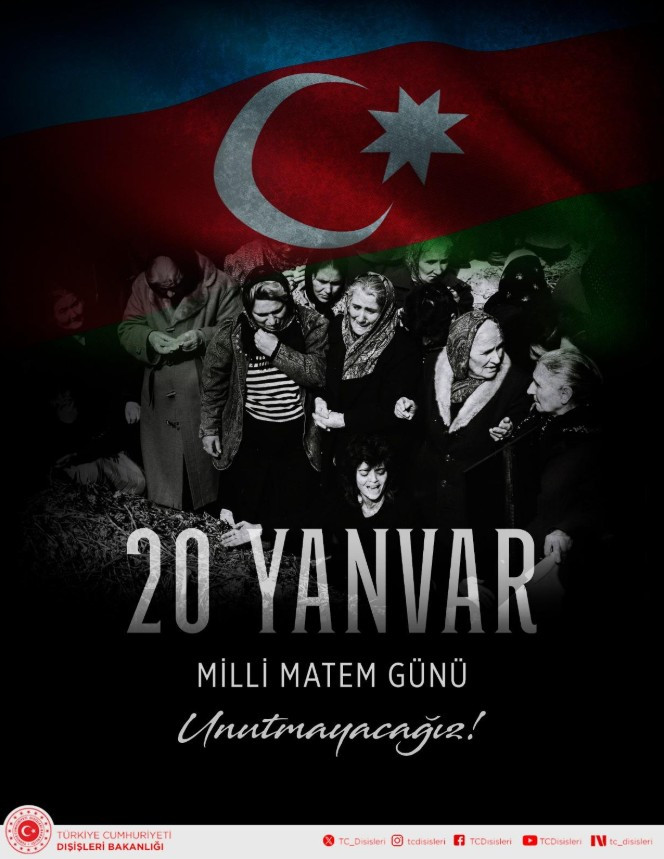Türkiyə Xarici İşlər Nazirliyi 20 Yanvar faciəsinin qurbanlarını yad edib.