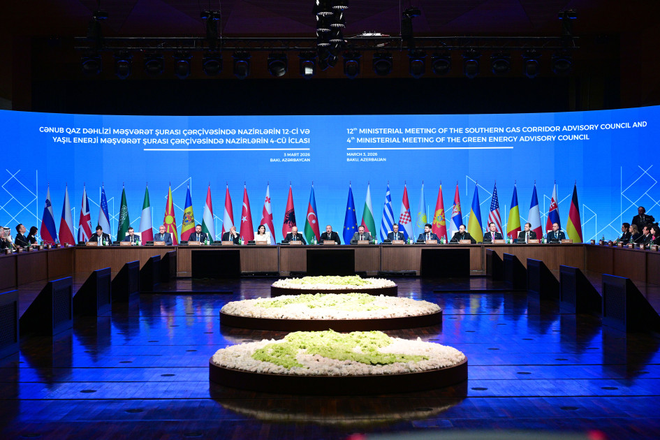 Martın 3-də Bakı Konqres Mərkəzində Cənub Qaz Dəhlizi Məşvərət Şurası çərçivəsində nazirlərin 12-ci və Yaşıl Enerji Məşvərət Şurası çərçivəsində nazirlərin 4-cü iclasları keçirilib.