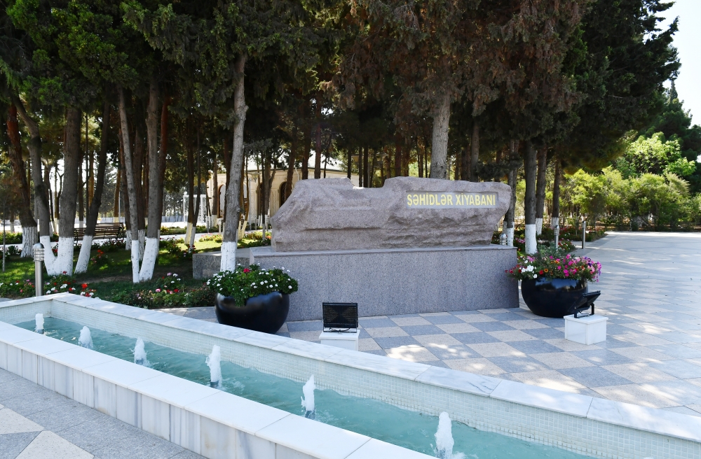 Qeyd edildi ki, Şəhidlər xiyabanının ərazisi genişləndirilərək 1,2 hektara çatdırılıb. Şəhidlər xiyabanında yaşıllıq örtüyü salınıb, işıqlandırma sistemi müasirləşdirilib, fəvvarə kompleksi inşa edilib. Burada yenidənqurma işləri çərçivəsində Vətən müharibəsi şəhidlərinin əziz xatirəsinə “Zəfər ağacı” abidəsi yaradılıb, həmçinin inzibati bina inşa olunub.
