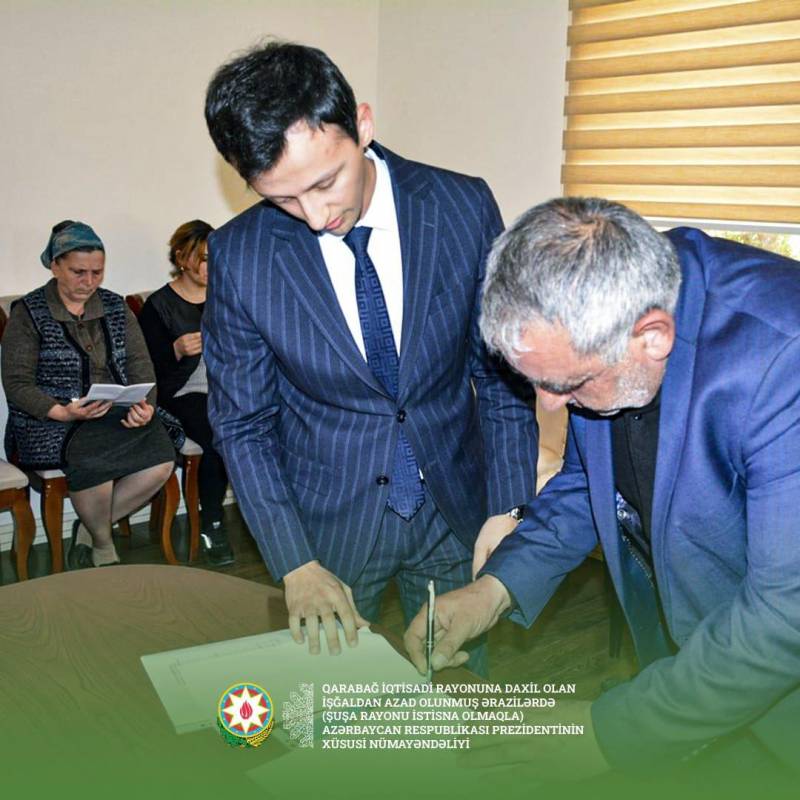 Today, a meeting was held with the citizens who’ll return to Talish village in Tartar region, and the drawing ceremony was held for houses. At the meeting, agreements were signed between the future employers and the employees.