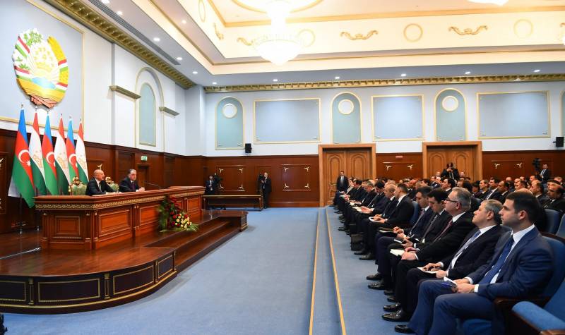 İlk növbədə, qardaş Tacikistana dövlət səfərinə dəvətə görə Tacikistan Prezidentinə təşəkkürümü bildirmək istərdim. Mən Tacikistana ilk dəfə gəlmirəm. Bu, mənim üçüncü rəsmi səfərimdir. Mən Tacikistana beynəlxalq tədbirlərdə iştirak etmək üçün də gəlmişəm.