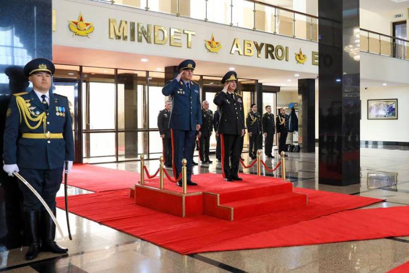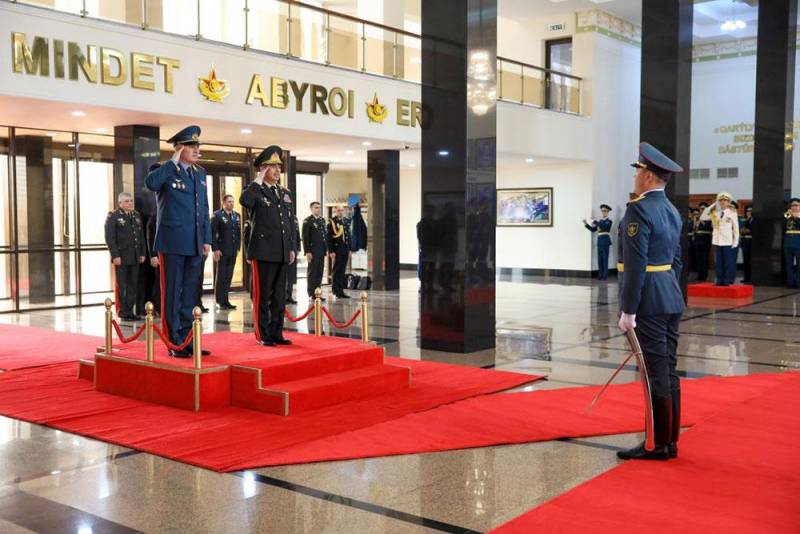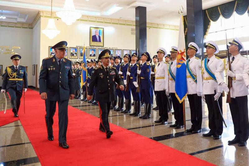 Əvvəlcə Astana şəhərində rəsmi qarşılanma mərasimi təşkil edilib. Müdafiə nazirləri fəxri qarovul dəstəsinin önündən keçib, hər iki ölkənin dövlət himnləri səsləndirilib və protokola uyğun olaraq general-polkovnik Z.Həsənov fəxri qonaqlar kitabına ürək sözlərini yazıb.