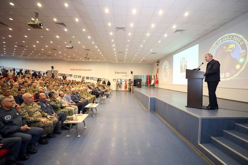 Sonra Türkiyənin milli müdafiə naziri cənab Hulusi Akar çıxış edərək birgə təlimlərin keçirilməsini yüksək qiymətləndirdiyini qeyd edib. Hərbi əməkdaşlığın inkişafının vacibliyini bildirən cənab H.Akar bu təlimlərin hərbçilərin təcrübə qazanması üçün çox vacib olduğunu, hərbi əməkdaşlığın xalqlarımız və ölkələrimizin təhlükəsizliyinə və bölgədəki sabitliyə yönəldiyini xüsusi vurğulayıb.