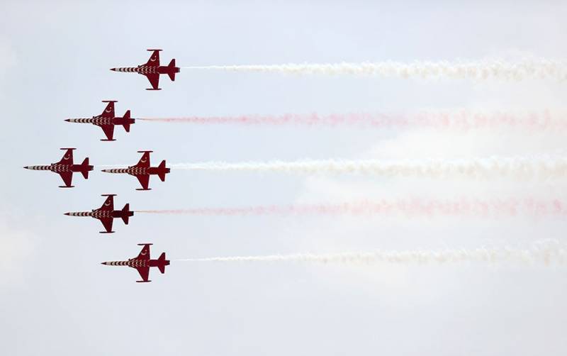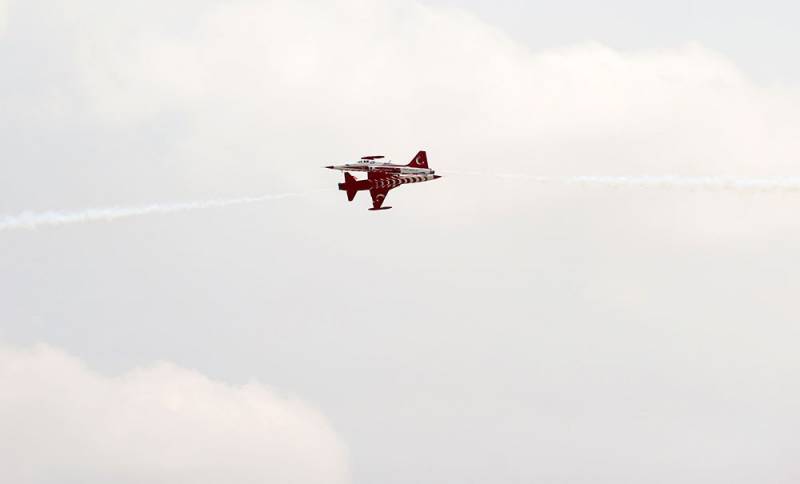 “Yüksək Səviyyəli Müşahidəçi Günü”ndə iştirak edən qonaqlar təlimlərin praktiki hissəsini, Türkiyə Hərbi Hava Qüvvələrinin “Solo Türk” aviaqrupuna daxil olan F-5 tipli hərbi təyyarələrin nümunəvi uçuşlarını izləyiblər.