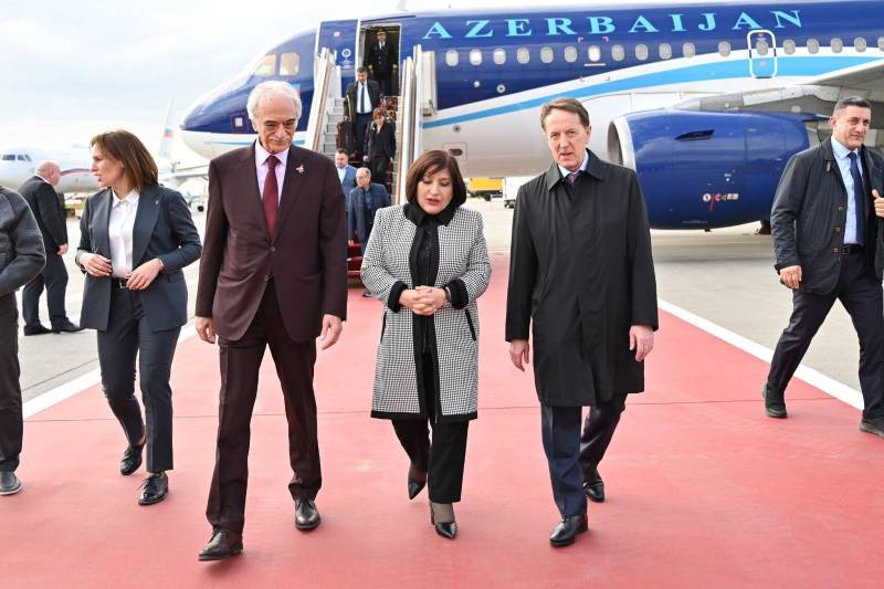 Miili Məclisdən Manset.az-a bildirilib ki, Moskva şəhərinin Vnukovo-2 beynəlxalq hava limanında nümayəndə heyətini Rusiya Dövlət Duması sədrinin müavini Aleksey Qordeyev, Azərbaycanın Rusiyadakı səfiri Polad Bülbüloğlu və digər rəsmi şəxslər qarşılayıblar.
