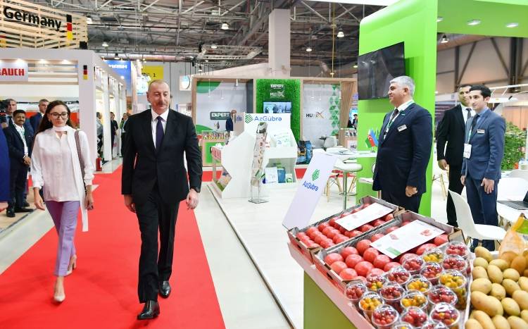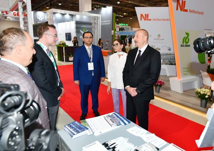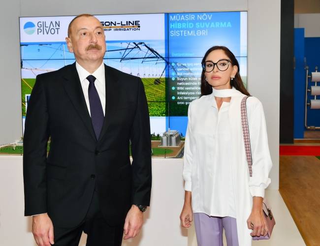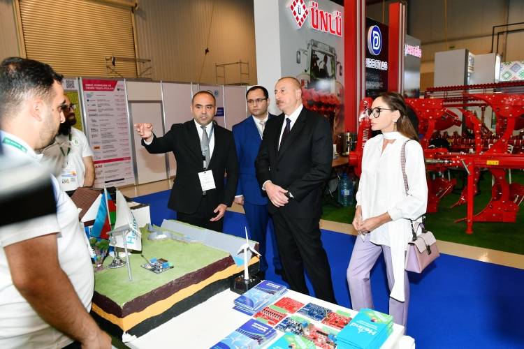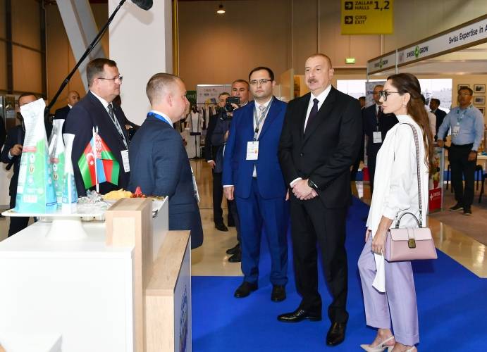 Dövlətimizin başçısı və birinci xanım sərgidə “Grow Group Azərbaycan”, “Maschio Gaspardo”, “New Holland”, “Rostselmaş”, “MySilo”, “Rauch Landmashchinen”, “SwissGrow”, “AfiMilk”, “Gowan”, “Can-Pa” şirkətlərinin, Çexiyanın, İtaliyanın, Belarusun, Gürcüstanın, ABŞ-ın və Niderlandın stendləri ilə tanış oldular. Stendlərdə ən müasir kənd təsərrüfatı texnikaları, əkin-biçin aqreqatları və kənd təsərrüfatı məhsulları təqdim olunur.