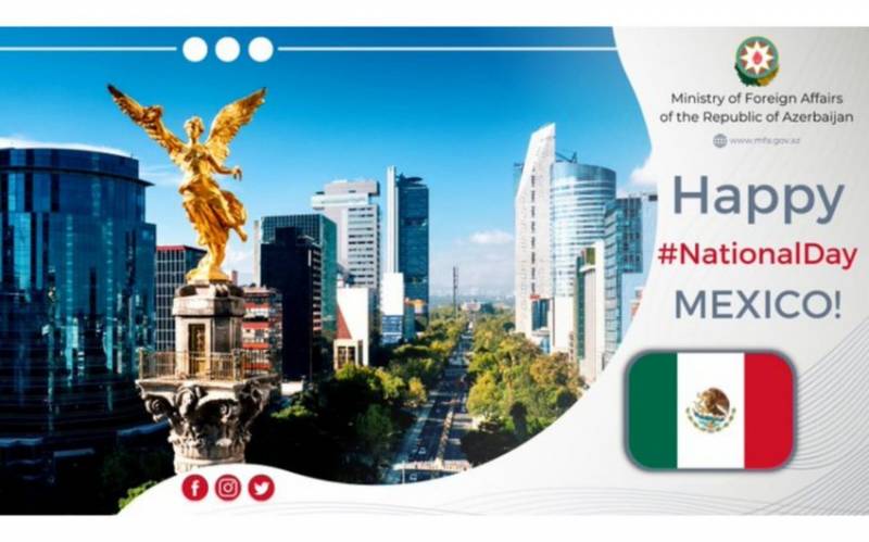 Azərbaycan Xarici İşlər Nazirliyi (XİN) Meksika Birləşmiş Ştatlarını Milli Günü münasibəti ilə təbrik edib.