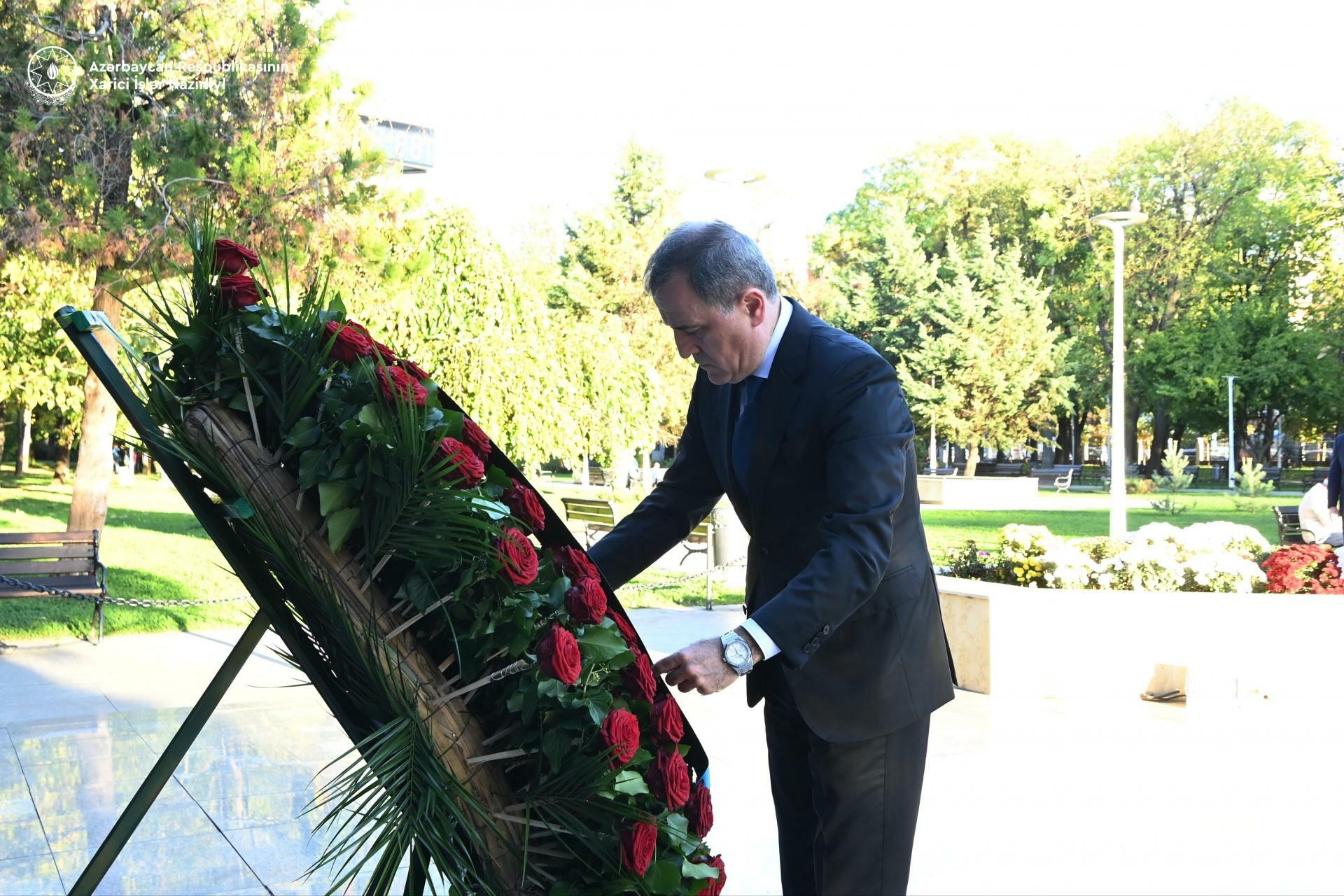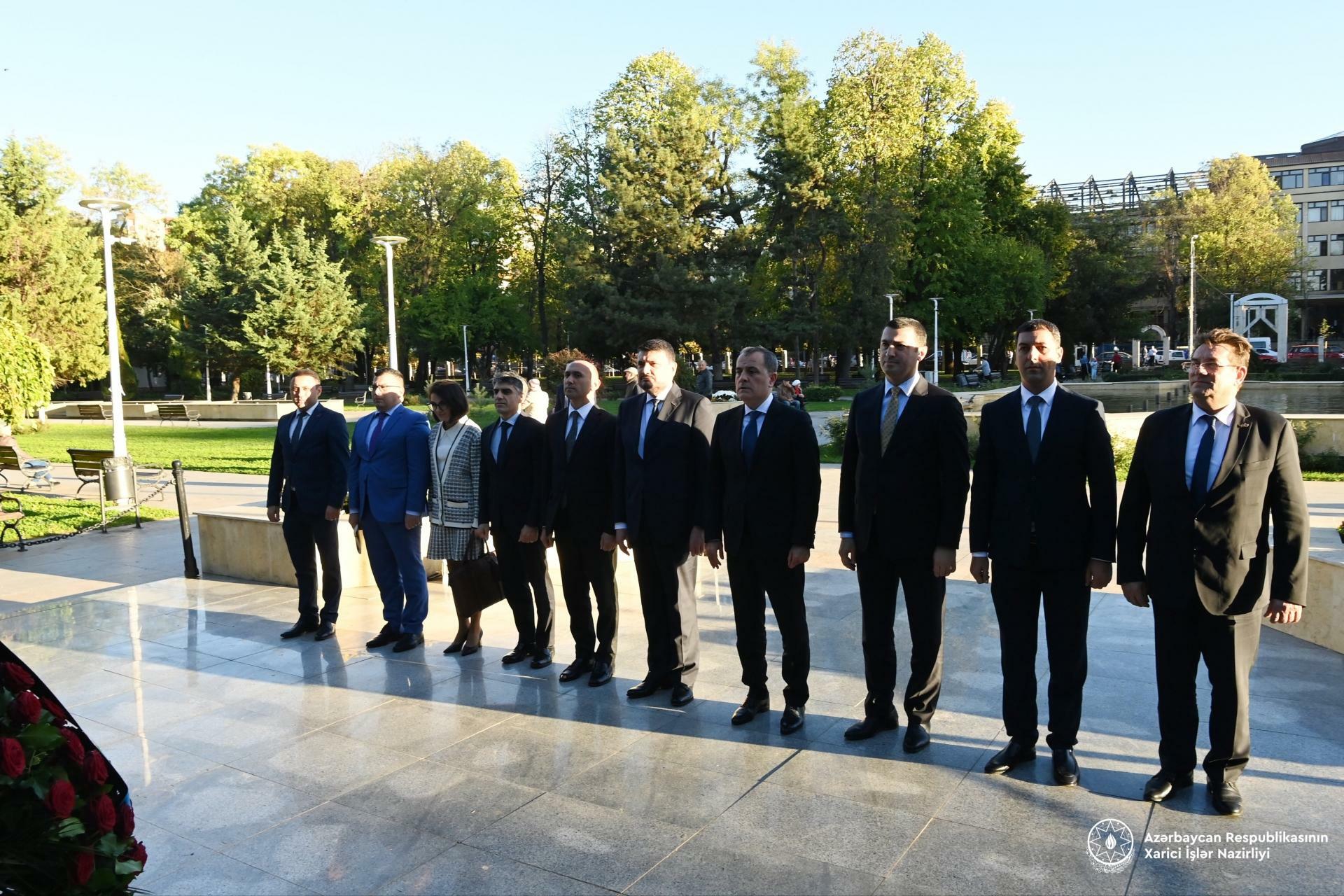 Azərbaycanın xarici işlər naziri Ceyhun Bayramov Buxarestdə Ümummilli Lider Heydər Əliyevin abidəsini ziyarət edib.